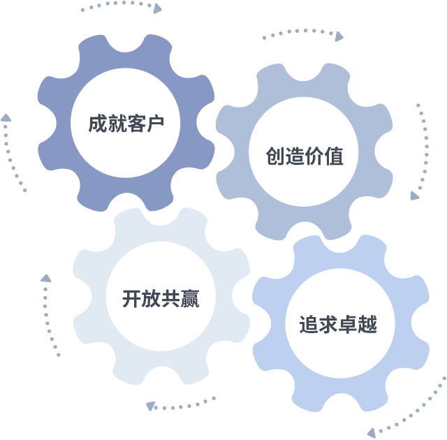 成就客户是一切决策的出发点,创造价值是衡量所有工作的标准,追求卓越是凤凰联盟做事做人的态度,开放共赢是凤凰联盟的格局也是最终的结果。价值观的齿轮环环相扣,推动着组织里的每个人不断向前。